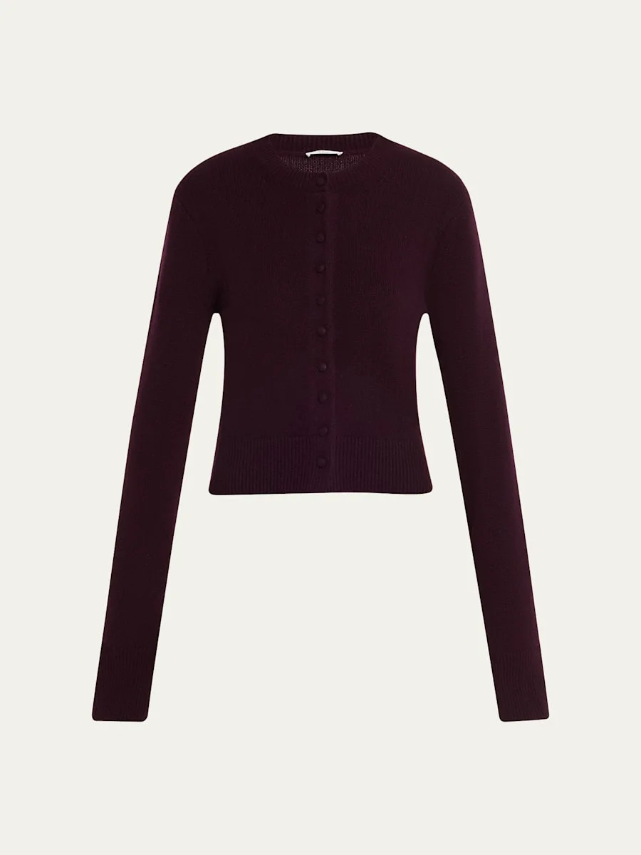 A.L.C. "Skyler" luxurious cashmere cardigan Crew neckline Long sleeves Classic fit Cropped length Buttonfront Cashmere Unlined Dry clean Imported
