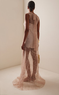 The NYC-based Spanish designer's latest impeccably crafted lesson in timeless luxury takes shape in slinky and seductive silhouettes. The reference? Her great-great-aunt, who was one of Spain’s first female pilots—and whose aerial views from the cockpit Alonso Rojas channeled into the uplifting, punchy palette. This gown features a slip dress with a lace overlay handcrafted by female artisans in a woman-owned New York City atelier. PRODUCT DETAILS - Spring '26 - Zip fastening - Composition: 93% GRS-certified recycled polyamide, 7% OEKO-TEX metallic polyester; Lining: 75% FSC-certified NAIA acetate, 25% polyester - Dry clean - Made in the USA