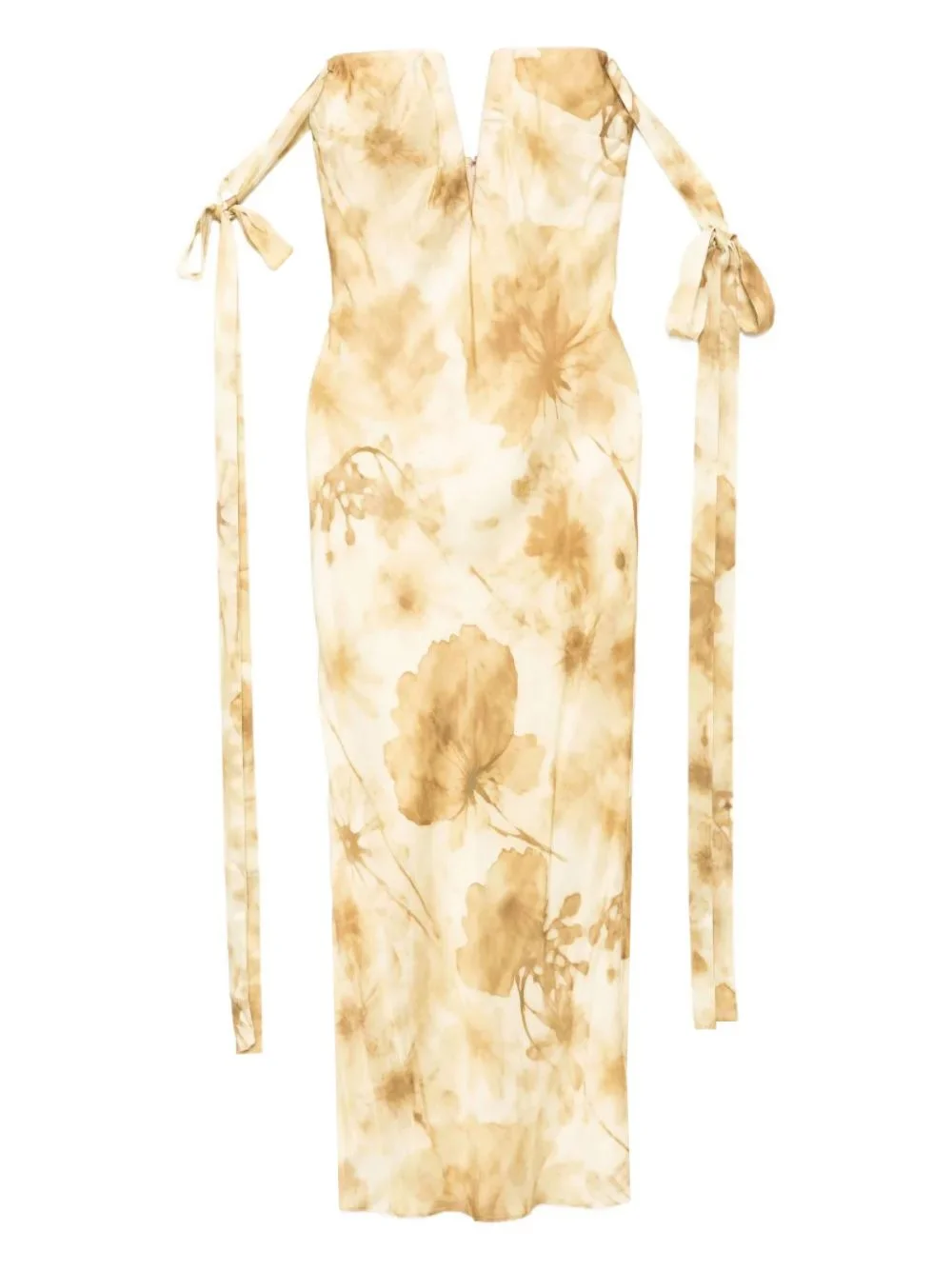 floral-print plunging gown Highlights - Mustard yellow - Concealed rear zip fastening - Tie sleeves - Rear slit Made in United States Composition Outer: Viscose 100% Lining: Cotton 100% Washing instructions Dry Clean Only