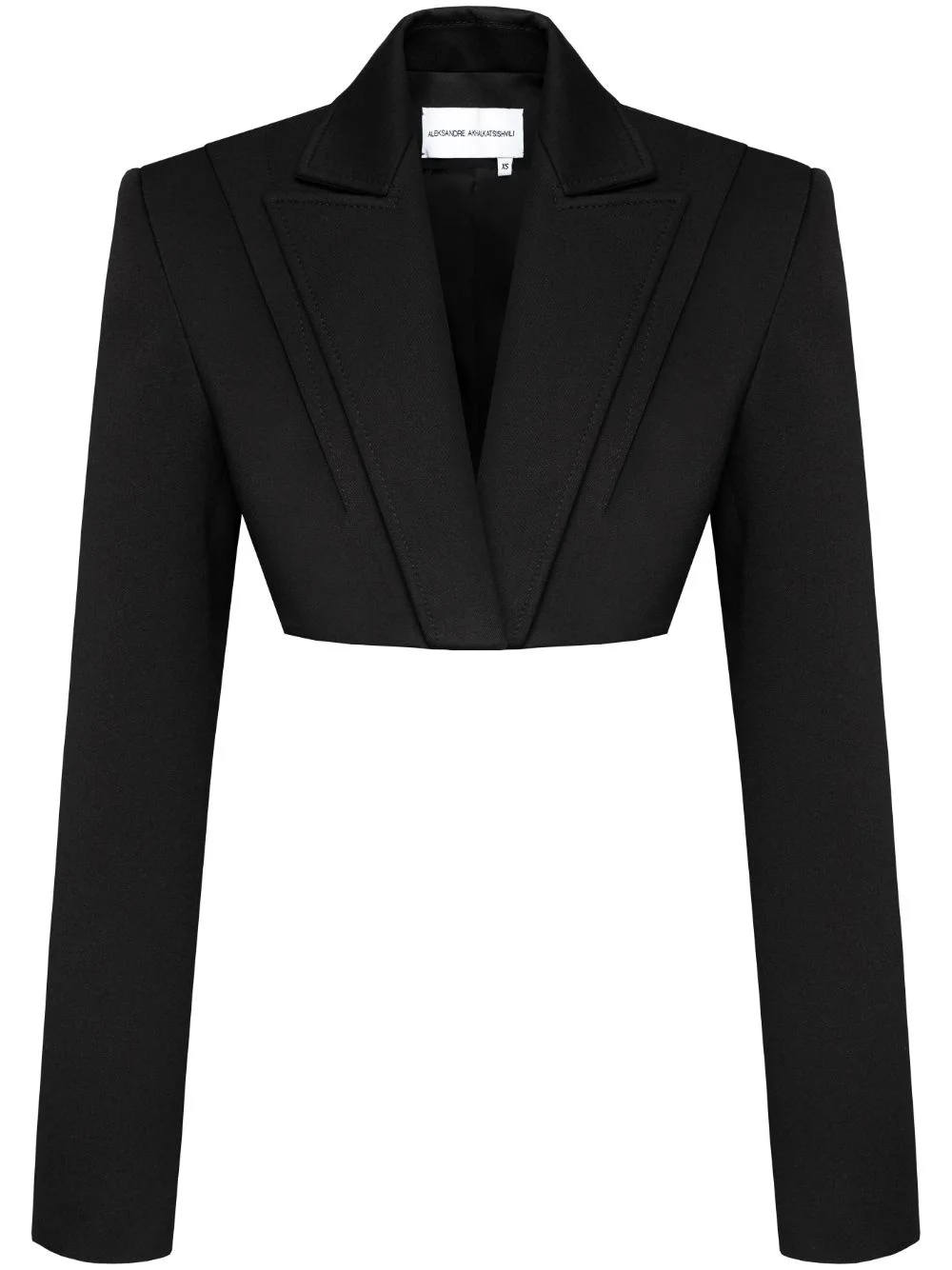 cropped blazer Highlights - Black - Peak lapels - Open front - Long sleeves - Straight hem - Cropped Imported Composition Lycra 100%