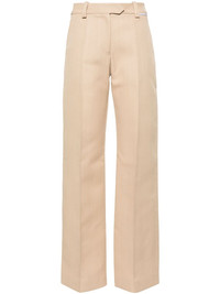 low-rise straight trousers Highlights - Beige - Cotton - Seam detailing - Low-rise - Belt loops - Concealed front button, hook and zip fastening - Straight leg - Two side slit pockets - Rear welt pocket - Straight hem - Long length Imported Composition Lining: Cotton 100% Outer: Viscose 70%, Polyester 30% SIZE & FIT Model measurements Height 5 ft 9 in(1.76 m) Bust/Chest 31.88 in(81 cm) Hips 35.43 in(90 cm) Waist 24.8 in(63 cm) FittingInformation Designed for a straight-leg fit, these trousers allow for a close fit at the waist and an unrestricted, comfortable fit over the leg Made from a midweight non-stretch fabric This piece fits true to size – take your usual size