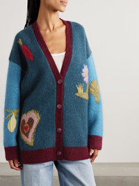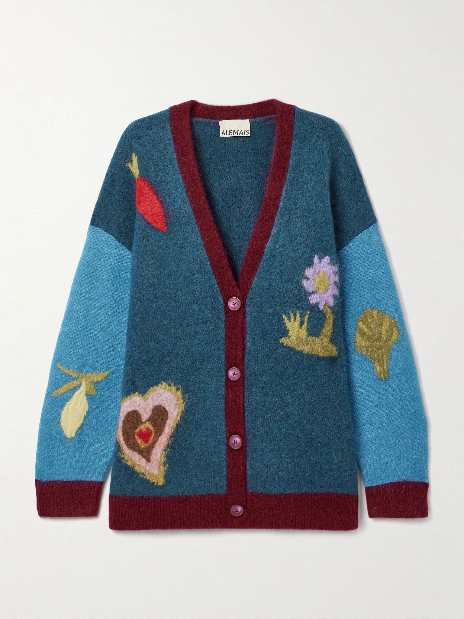 ALEMAIS' 'Fredo' cardigan is made in collaboration with graphic novelist Greg Sindel of Studio A. It's knitted with plenty of mohair and wool and has an oversized shape that feels so cozy. Size & Fit - Intended to be oversized; we recommend sizing down if you prefer a closer fit - Mid-weight knit - Model is 180cm/ 5'11" and is wearing a size Small Details & Care - Multicolored jacquard-knit - Button fastenings through front - 33% mohair, 33% wool, 28% nylon, 6% elastane - Dry clean
