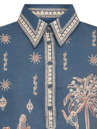 blue printed design button fastening collared border trim - Color: BLUE/NEUTRALS - Made in: China - Designer Style ID: 6204T BLUE Composition and care Linen/flax: 100.0%