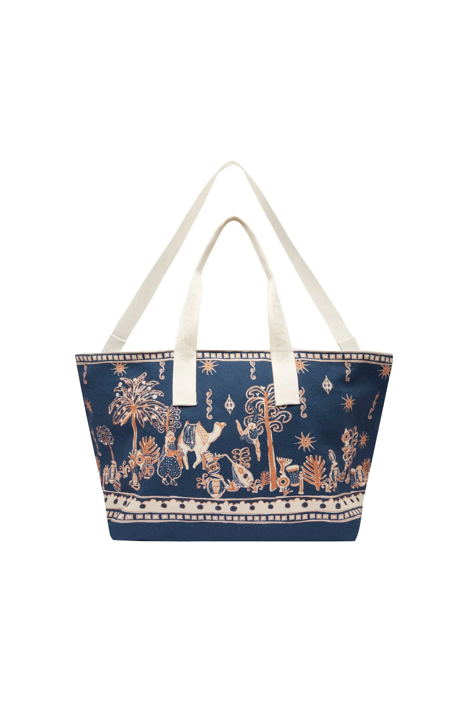 Product Details - Printed cotton canvas weekender bag with zip top closure - Acacia print on back and front panels - Ivory branded woven jacquard webbing handles and removable cross-body strap - Webbing strap at the back so weekender can slide over the handles and sit on top of your wheelie suitcase - Internal slip pocket - Refer to flat lay product shots for true product colour representation - Composition: 100% Cotton To care for your piece, we recommend to: - Avoid prolonged exposure to light and heat to prevent damage to delicate fibres. - Handle with care. Avoid bending, overfilling, or placing under pressure. - Protect from moisture and avoid prolonged exposure to rain or humidity. If wet, gently pat dry with a soft cloth. - When not in use, store bags in your Alemais dust bag. Avoid hanging. - Clean gently with a soft, dry cloth. For deeper cleaning, seek professional services only. Size & Fit Dimensions: 65cm W x 35cm H x 17cm base depth / 25cm handle drop / 81cm crossbody strap