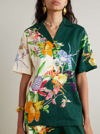EDITORS'NOTES The beauty of nature often inspires ALEMAIS' bold patterns. This shirt is tailored from breezy linen-blend that's printed with botanical florals and has a loose shape with a camp collar. Pack yours with the matching pants for your next relaxing getaway. SIZE & FIT Model measurements: - Fits true to size, take your normal size - Take the next size down if you wish to achieve a closer fit - Designed for an oversized fit, cut to be worn very loose - Mid-weight, non-stretchy fabric - Model is 180cm/ 5'11" and is wearing a UK 8 - Bust: 80cm/ 31.5" - Waist: 67cm/ 26" - Hip: 89cm/ 35" DETAILS & CARE - Multicolored linen-blend - Button fastenings through front - 59% linen, 38% viscose, 3% elastane - Green dry clean