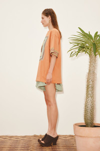 Product Details - Relaxed fit short sleeve t-shirt with placement print - Ribbed neck detail - Refer to size guide for garment measurements - Refer to flat lay product shots for the true product colour representation - Composition: 100% Organic Cotton - For this piece we recommend a cold hand wash. Size & Fit Model height is 5’9in/175cm, Bust: 83cm/32.5in, Waist: 57cm/22.5in, Hip: 87cm/34.5in, and wears a size AU6