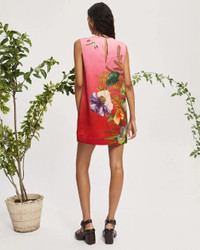 The Inez Mini Dress in Pink Ombre by Alemais is a crew neck, shift mini dress crafted in a floral printed linen blend. - Loop and button closure at centre back - 56% Linen 44% Viscose