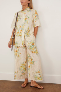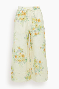 The Alemais Juliette Pant is crafted in their must-have floral print. You'll love the relaxed fit of these trousers with a drawstring waistband in lightweight European linen. Wear yours with the matching top and sandals. FIT DESCRIPTION MODEL MEASUREMENTS - Fits true to size, take your normal size - Wide leg - Relaxed fit - High rise - Drawstring waistband - Cropped length - 100% EUROPEAN LINEN - Charley is wearing a size 6/ 2 US - Bust: 33” - Waist: 25” - Hips: 34” - Height: 5’8”