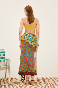 Product Details - Fitted wrap midi skirt silhouette - Fitted waistband with self ties - Layered peplum ruffles - Invisible zipper at left side - Refer to size guide for garment measurements - Refer to flat lay product shots for the true product colour representation - Composition: 100% BCI Cotton - For this piece we recommend dry clean only. Size & Fit Model height is 5’10.5in/179cm, Bust: 81cm/32in, Waist: 61cm/24in, Hip: 88cm/34.5in, and wears a size AU6