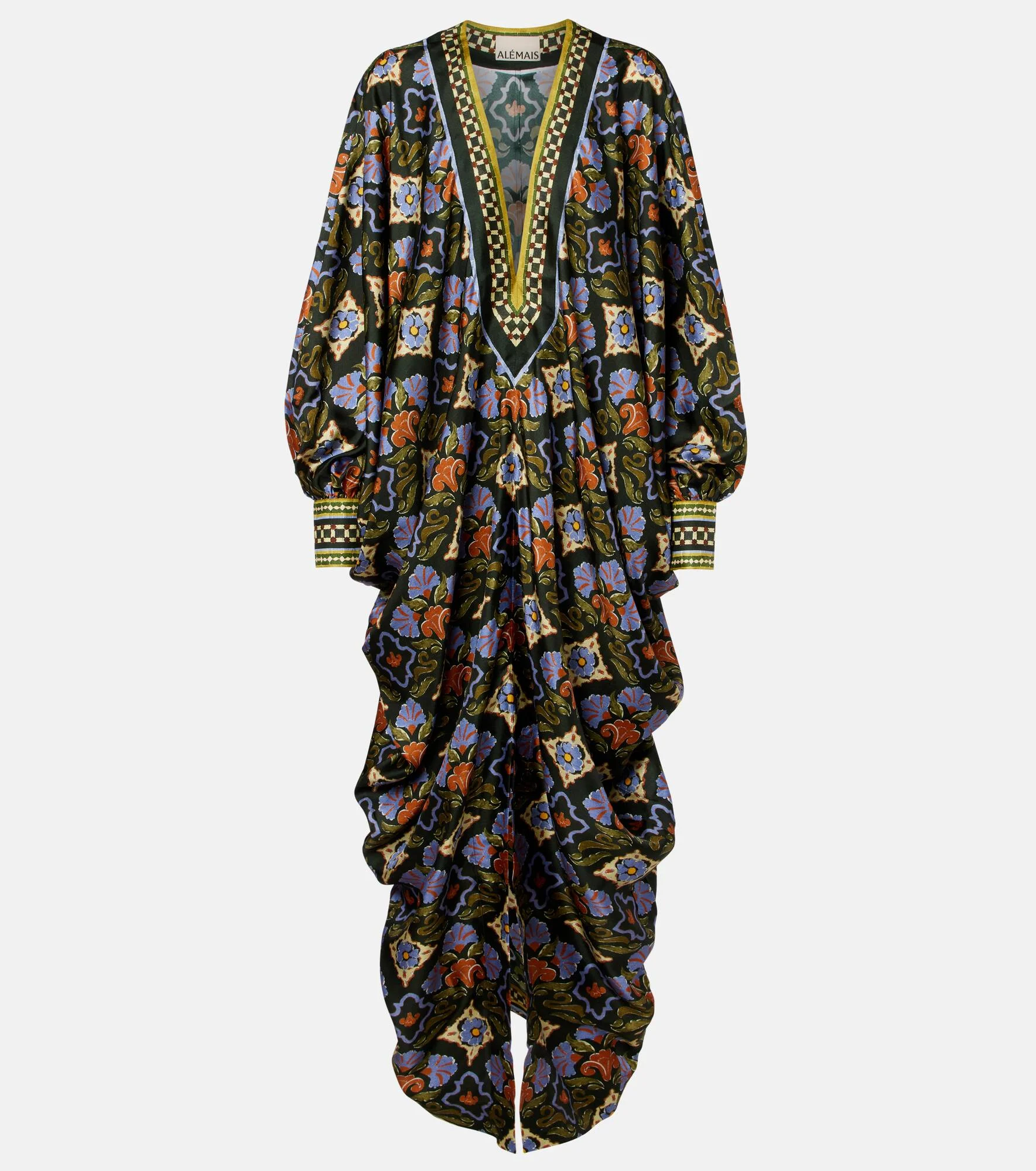 A contemporary brand with an artisanal focus, Alemais celebrates the art of fashion through an eclectic mix of patterns and prints. Made purely from silk, the Cece kaftan features a plunging neckline, floral print, and draped skirt. Product Details - Material: 100% silk - Care instructions: dry clean - Made in China - Designer color name: Multi - Item color: multicolor - Item number: P01124490 Size & Fit - Fits large to size - we recommend trying one size smaller - Oversized - Non-stretchy fabric - The model seen in the picture is 178cm-5'10" and wearing a size UK 4