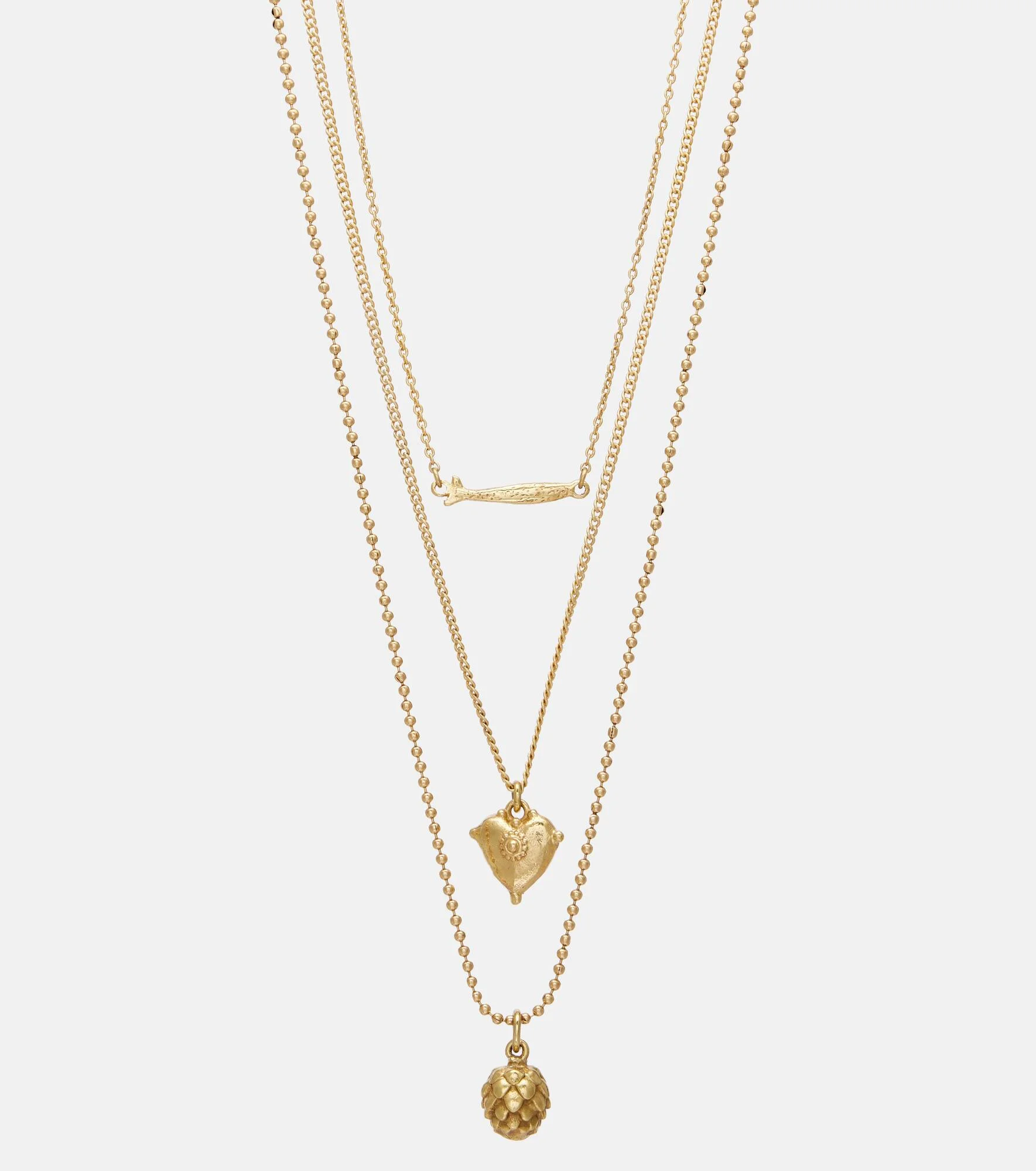 This necklace from Alemais features a layered silhouette with three gold-toned chains, adding a romantic touch to the look. The design is adorned with charms that showcase a tropical motif, making it perfect for the warm season. Product Details - Material: brass - Made in Indonesia - Item color: gold - Closure: lobster-clasp fastening - Item number: P01071498 Size & Fit - Length when open 42cm-16.5" - Width 0,2cm-0" - Pendant length 1,5cm-0.5" - Pendant width 2cm-1"