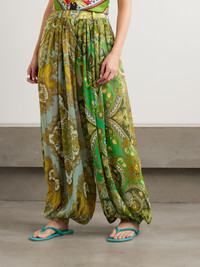 ALEMAIS' unique patterns illustrate the limitlessness of imagination. These 'Clemenza' harem pants are tailored in a balloon shape from crepe woven with a touch of silk for lustre. Perfect for your vacation wardrobe, they feature slightly different paisley prints on each leg. Size & Fit - Fits true to size, take your normal size - Mid-rise, intended for a relaxed fit, tapered at the hem - Lightweight, non-stretchy fabric - Model is 177cm/ 5'10" and is wearing a UK 8 Model measurements: - Bust: 85cm/ 33” - Waist: 66cm/ 26” - Hip: 92cm/ 36” Details & Care - Multicolored crepe - Partially concealed button and zip fastenings at front - 75% viscose, 25% silk; pocket lining: 100% cotton - Unlined - Dry clean
