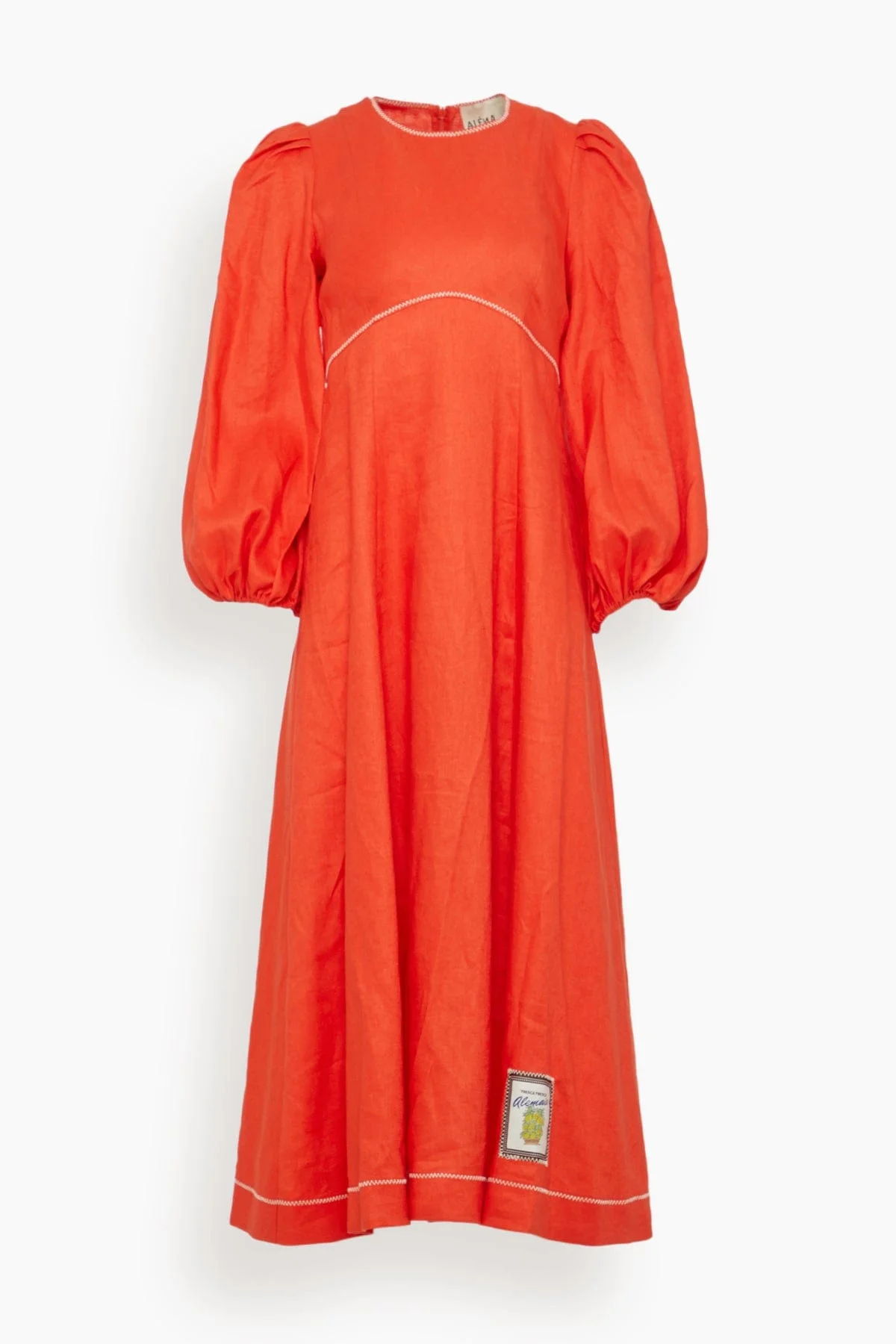 The Alemais Contessa Long Sleeve Midi Dress is a wonderful transitional piece to add to your wardrobe. This dress features a full skirt and sleeves in a beautiful European linen. Wear yours with ballet flats and a tote bag. FIT DESCRIPTION MODEL MEASUREMENTS - Fits true to size, take your normal size - Midi length - Fit and flare silhouette - Contrasting stitching - Artwork in collaboration with Greg Sindel of Studio A - Elastic cuffs - Back zipper - 100% European linen - Harriet is wearing a size 6/ 2 US - Bust: 32" - Waist: 24" - Hips: 30.5" - Height: 5’8.5”