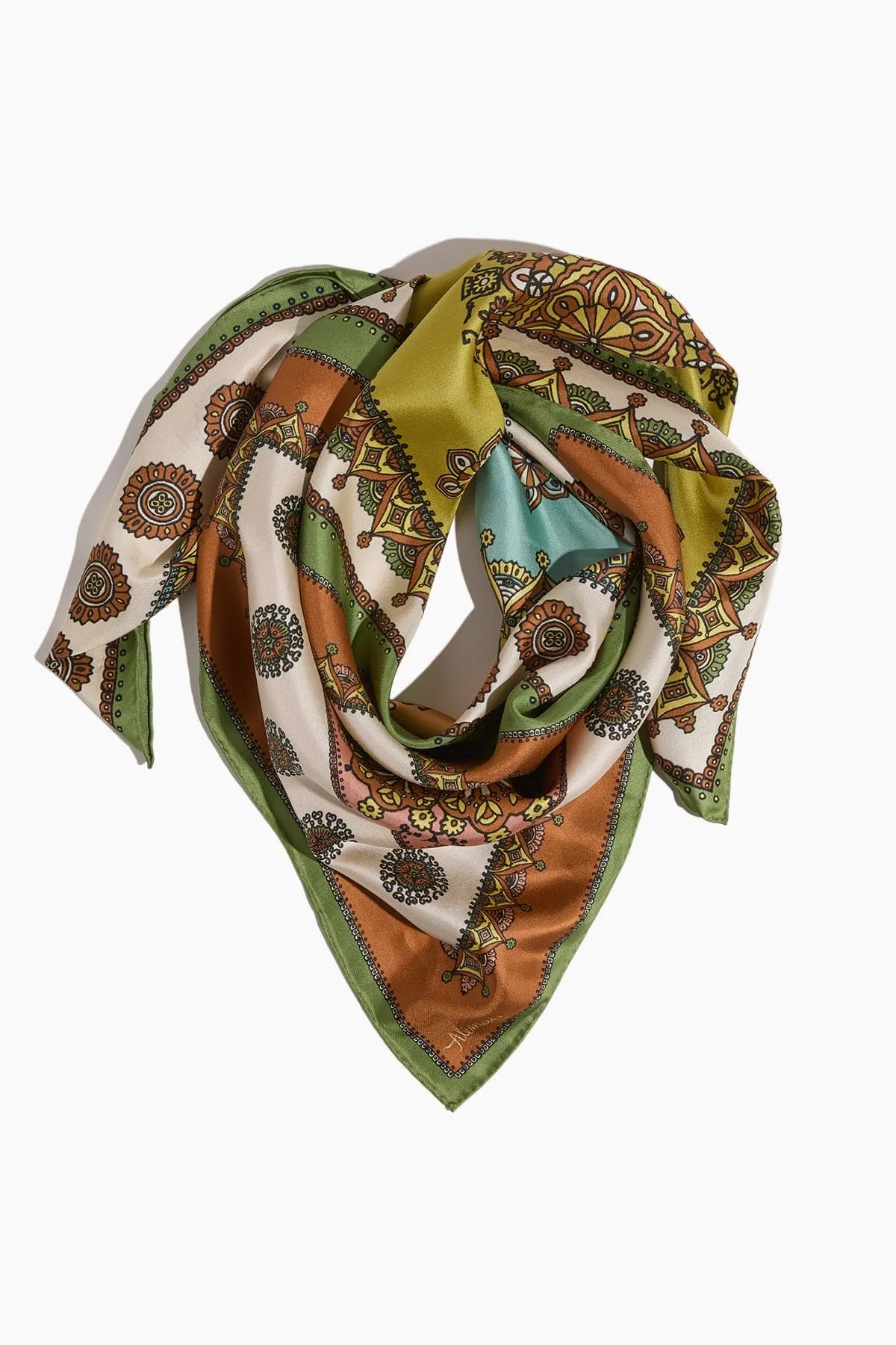 The Alemais Contina Tiles Silk Scarf in Multi is a printed square scarf. FIT DETAILS - Printed square scarf - Hand-rolled edging - Composition: 100% Silk Twill