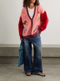 ALEMAIS' 'Court' cardigan is jacquard-knitted with a generous amount of alpaca and mohair and has a cozy, oversized fit with dropped shoulders and ribbed edges for a laid-back feel. It's detailed with the whimsical illustrations of Australian artist Anouk Colantoni, including a pineapple, whistle and pair of tennis rackets. Size & Fit - Intended to be oversized; we recommend sizing down if you prefer a closer fit - Weighted knit - Model is 180cm/ 5'11" and is wearing a size Small Model measurements: - Bust: 89cm/ 35" - Waist: 69cm/ 27" - Hip: 97cm/ 38" Details & Care - Multicolored alpaca, mohair, nylon and spandex-blend - Button fastenings through front - 33% alpaca, 32% mohair, 27% nylon, 6% spandex - Hand wash or dry clean