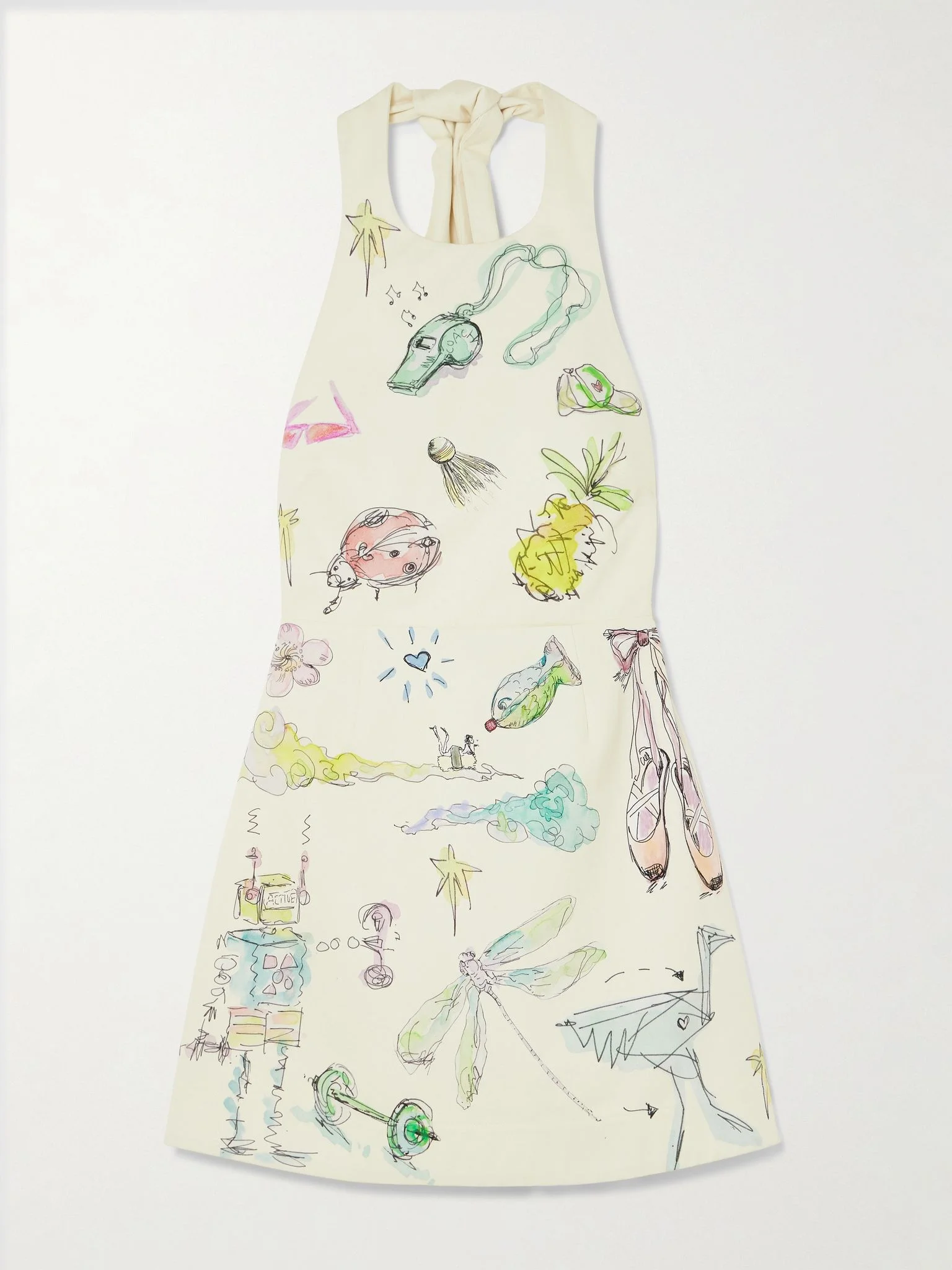 The watercolor doodle print, created by Australian artist Anouk Colantoni, makes ALEMAIS' 'Court' dress so much fun to wear. It's cut from organic cotton-twill for a close, figure-skimming fit and has a chic halterneck with adjustable ties. Platform sandals will complement the mini hem. Size & Fit - Fits true to size, take your normal size - Designed to be fitted at the bust and waist, slightly loose at the hip - Mid-weight, non-stretchy fabric - Model is 180cm/ 5'11" and is wearing a US 6 Model measurements: - Bust: 89cm/ 35" - Waist: 69cm/ 27" - Hip: 97cm/ 38" Details & Care - Multicolored organic cotton-twill - Ties at neck, concealed hook and zip fastening at back - 100% organic cotton - Hand wash or dry clean