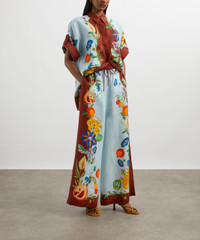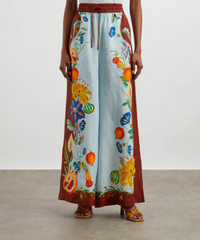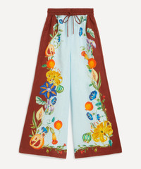 DETAILS Linen trousers Regular fit Loose, wide leg Full length In seam pockets Elasticated waist with ties All-over print SIZE & FIT Model is 174cm/5'8.5"; Chest: 77cm; Waist 59cm; Hips: 86cm and wears a size 8 COMPOSITION & CARE 100% European Flax Linen Hand wash cold