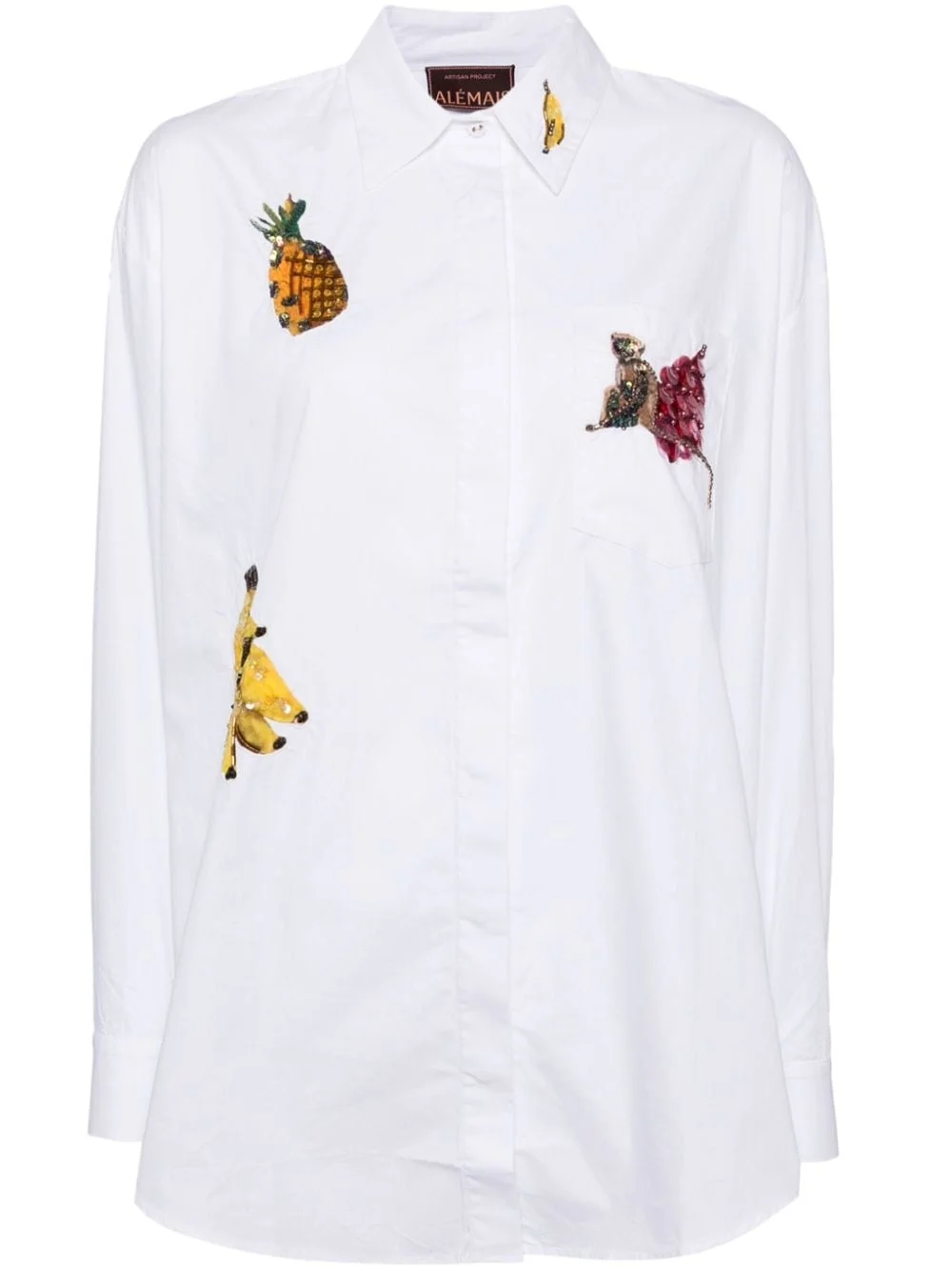 Diamond Dancer shirt Highlights - White - Cotton - Front button fastening - Sequin detailing - Patchwork design - Chest patch pocket - Long sleeves - Buttoned cuffs - Curved hem Imported Composition Cotton 100% SIZE & FIT Model measurements Height 5 ft 9 in(1.76 m) Bust/Chest 31.1 in(79 cm) Hips 35.03 in(89 cm) Waist 24.4 in(62 cm) FittingInformation Designed for a relaxed fit, this piece allows for comfort and movement when worn Made from a midweight non-stretch fabric