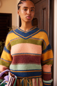 Product Details - Relaxed sweater silhouette - V-neck - Dropped shoulder - Refer to size guide for garment measurements - Refer to flat lay product shots for true product colour representation - Composition: 33% Rms Mohair 33% Rws Wool 28% Recycled Nylon 6% Elastane - For this piece we recommend dry clean only. Size & Fit Model height is 5’11in/180cm, Bust: 79cm/31in, Waist: 61cm/24in, Hip: 87cm/34.5in, and wears a size AU6