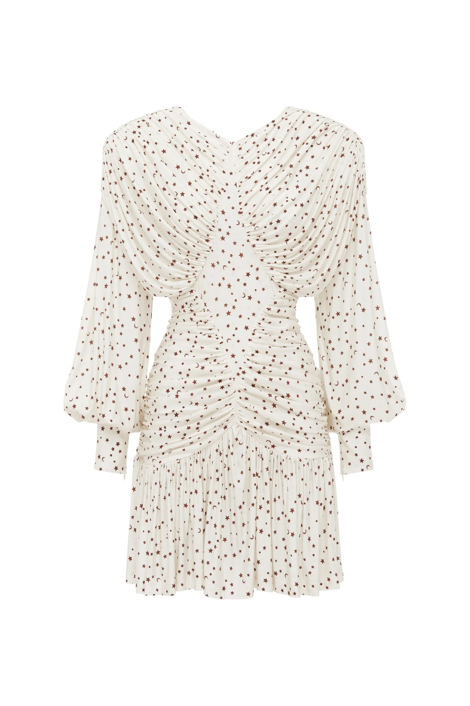 Product Details - Fitted bodice mini dress silhouette - Ruched detailing - Crystal embellishment - Balloon sleeve - Invisible zip at centre back - Fully lined - Refer to size guide for garment measurements - Refer to flat lay product shots for true product colour representation - Composition: 91% Viscose 9% Elastane - For this piece we recommend dry clean only. Size & Fit Model height is 5’11in/180cm, Bust: 81cm/32in, Waist: 61cm/24in, Hip: 90cm/35.5in, and wears a size AU6