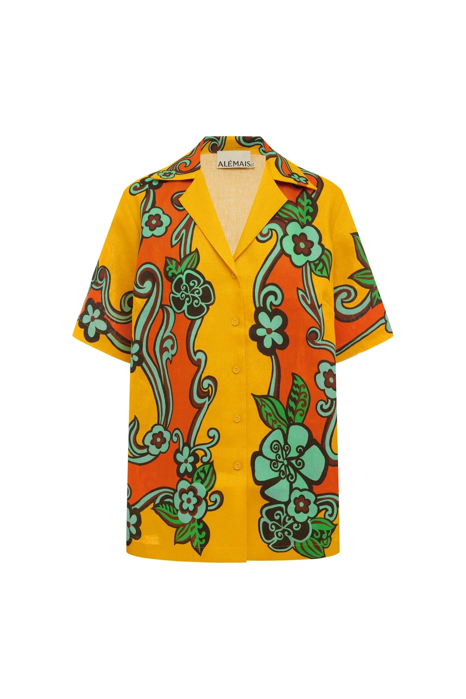 Product Details - Relaxed shirt silhouette - Rolled collar - Short sleeve - Fabric-covered buttons - Refer to size guide for garment measurements - Refer to flat lay product shots for true product colour representation - Composition: 100% European Flax Linen - For this piece we recommend a cold hand wash. Size & Fit Model height is 5'10.5in, Bust: 78cm/31in, Waist: 64cm/25in, Hip: 96cm/38in, and wears a size AU8