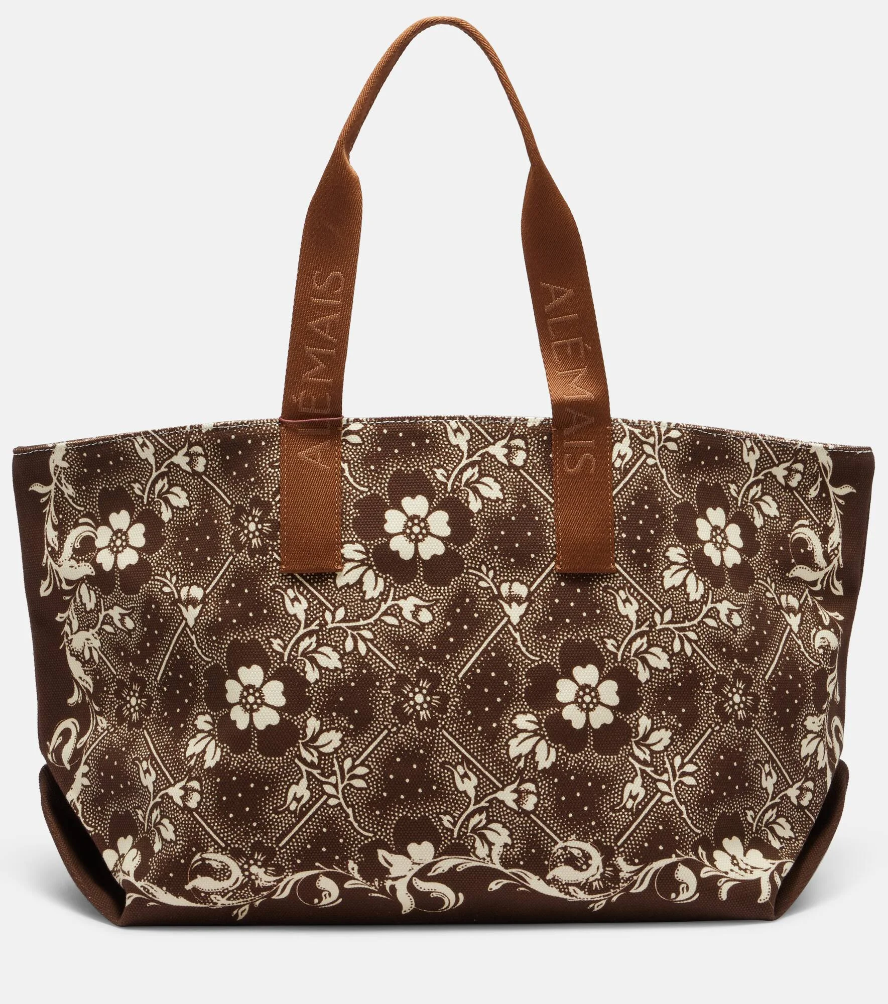 A contemporary brand with an artisanal focus, Alemais celebrates the art of fashion through an eclectic mix of patterns and prints. In signature fashion, this spacious tote bag showcases a floral motif on a sturdy canvas backdrop. Product Details - Material: cotton - Lining: cotton - Made in China - Color: brown - Designer color name: Brown - Top handles - Internal details: internal slot pocket - Item number: P01131865 Size & Fit - Height 33,5cm-13" - Min. width 43cm-17" - Max. width 64cm-25" - Depth 20cm-8" - Length of handles 60cm-23.5"
