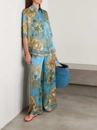 ALEMAIS makes the most perfect clothes for vacations. This 'Cassie' shirt, for example, is cut for a boxy profile from silk-satin that's sand-washed for a smooth handle and enhanced drape. The ornate floral print looks great at the beach over swimwear or teamed with the matching pants when exploring. Size & Fit - Fits true to size, take your normal size - Cut for a relaxed fit - Lightweight, non-stretchy fabric - Model is 177cm/ 5'10" and is wearing a UK 8 Model measurements: - Bust: 85cm/ 33” - Waist: 66cm/ 26” - Hip: 92cm/ 36” Details & Care - Tonal-blue, beige and cream silk-satin - Partially concealed button fastenings through front - 100% silk - Dry clean