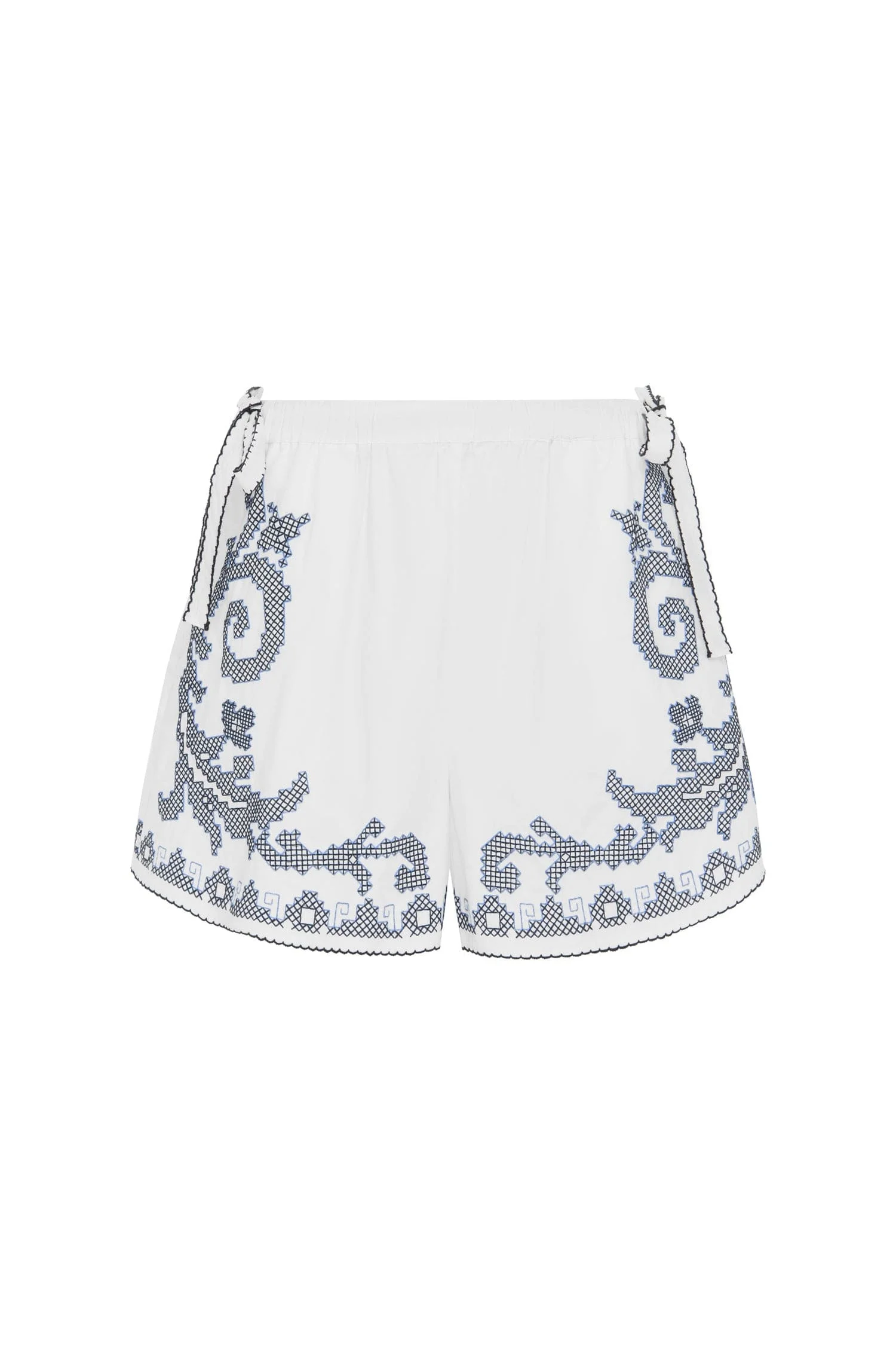 Product Details - Relaxed short silhouette - Elasticated waistband with self-belt ties at side - Embroidered detail - In seam pockets - Patch pocket on back - Refer to size guide for garment measurements - Refer to flat lay product shots for true product colour representation - Composition: 100% Organic Cotton - For this piece we recommend a cold hand wash. Size & Fit Model height is 5'11"in/180cm, Bust: 77cm/30in, Waist: 58cm/23in, Hip: 89cm/35in, and wears a size AU6
