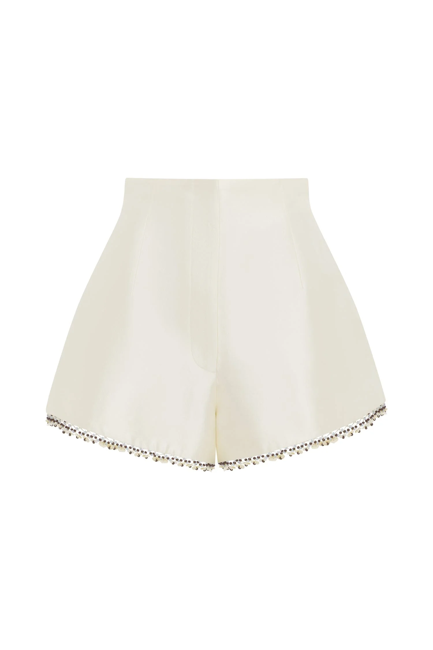 Product Details - Tailored short silhouette - Fly front zipper with hook and bar closure - Beaded embellishment at hem - Fully lined - Refer to size guide for garment measurements - Refer to flat lay product shots for the true product colour representation - Composition: 65% Wool 35% Silk - For this piece we recommend dry clean only. Size & Fit Model height is 5’10.5in/179cm, Bust: 81cm/32in, Waist: 61cm/24in, Hip: 88cm/34.5in, and wears a size AU6