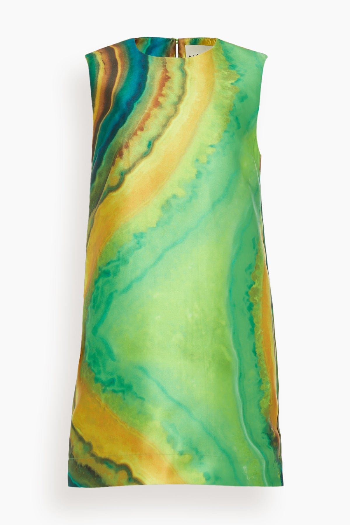 The Alemais Iris Mini Dress is a must-have piece from their Spring 25 Collection. This mini dress features a shift silhouette in a beautiful tie-dyed inspired print. Wear yours with heels and a clutch. FIT DESCRIPTION MODEL MEASUREMENTS - Fits true to size, take your normal size - Mini length - Shift silhouette - Crew neckline - Loop back closure - 100% Recycled Polyester - TS: "Trunk Show" Product - Emma is wearing a size 6/ 2 US - Bust: 32” - Waist: 25” - Hips: 34” - Height: 5’7”