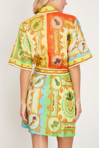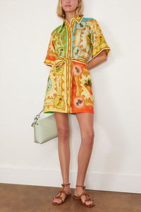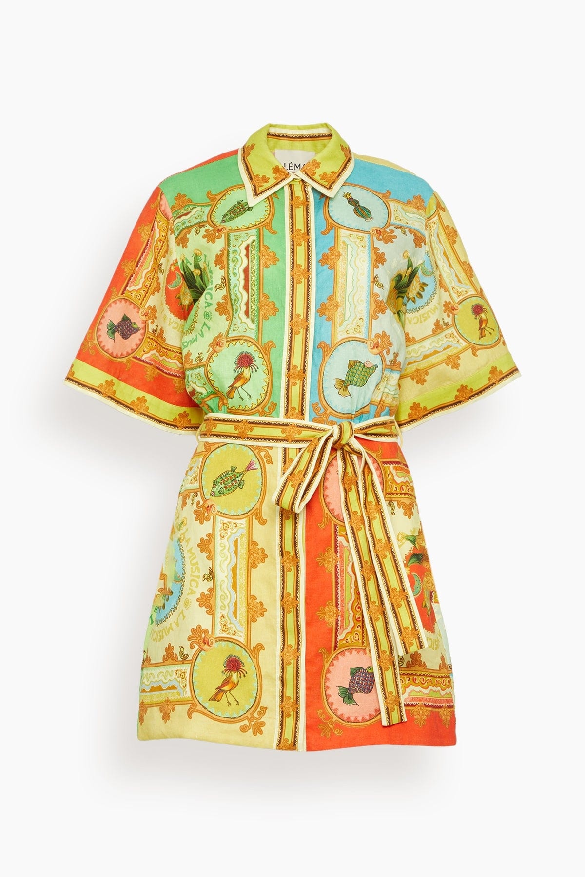 The Alemais La Musica Mini Dress is crafted in their one-of-a-kind print. This shirtdress features a playful mini length and self tie waistband in European linen. Wear yours with loafers and a crossbody bag. FIT DESCRIPTION MODEL MEASUREMENTS - Fits true to size, take your normal size - Shirtdress - Mini length - Relaxed fit - Self tie belt - Point collar - 100% European Flax Linen - Harriet is wearing a size 6/ 2 US - Bust: 32" - Waist: 24" - Hips: 30.5" - Height: 5’8.5”