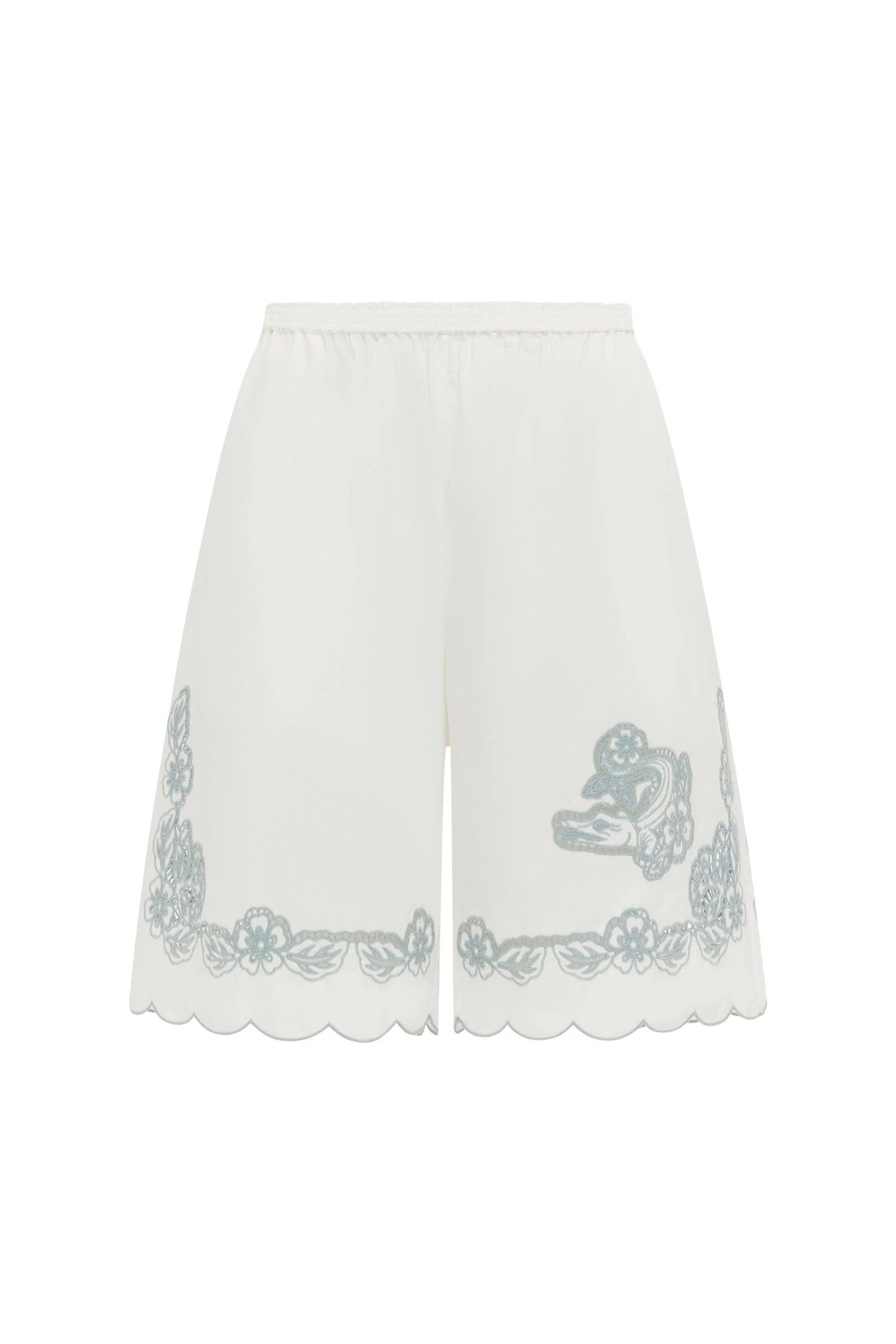 Product Details - Relaxed short silhouette - Elasticated waistband - Scallop edging - Broderie detail - Inseam pockets - Refer to size guide for garment measurements - Refer to flat lay product shots for the true product colour representation - Composition: 100% BCI Cotton - For this piece we recommend dry clean only. Size & Fit Model height is 5’11in/180cm, Bust: 80cm/31.5in, Waist: 58cm/23in, Hip: 89cm/35in, and wears a size AU6