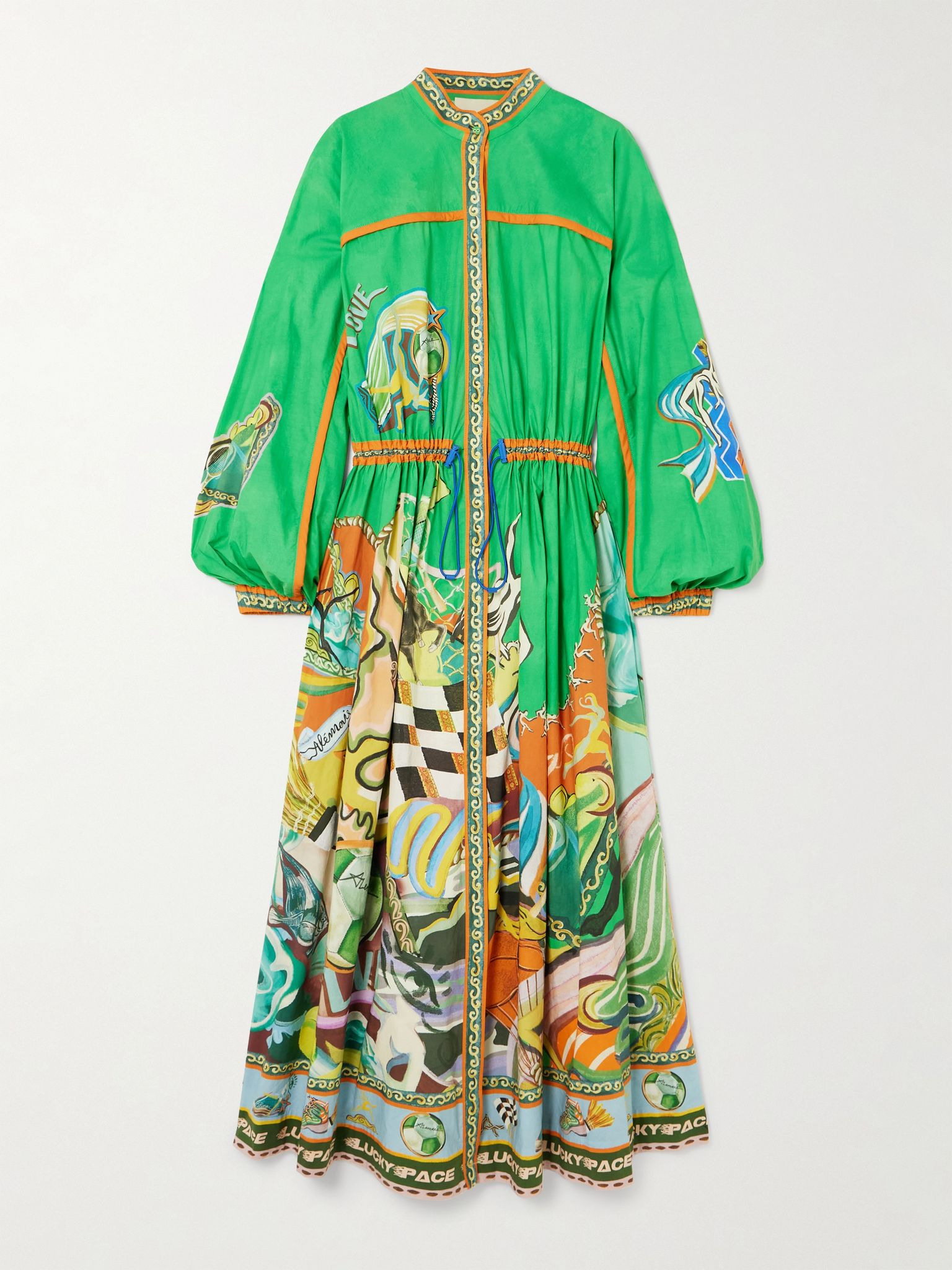 Lucky Pace printed organic cotton-poplin midi shirt dress Green