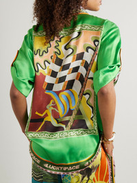 ALEMAIS' designs are imbued with an adventurous spirit. Cut from lustrous silk-satin, this 'Lucky Pace' shirt is printed with a hot air balloon landscape and an array of symbolic motifs. The concealed placket streamlines its floaty shape. Size & Fit - Fits true to size, take your normal size - Designed for a loose fit - Lightweight, fluid, non-stretchy fabric - Model is 180cm/ 5'11" and is wearing a US 6 Model measurements: - Bust: 89cm/ 35" - Waist: 69cm/ 27" - Hip: 97cm/ 38" Details & Care - Multicolored silk-satin - Partially concealed button fastenings through front - 100% silk - Hand wash or dry clean