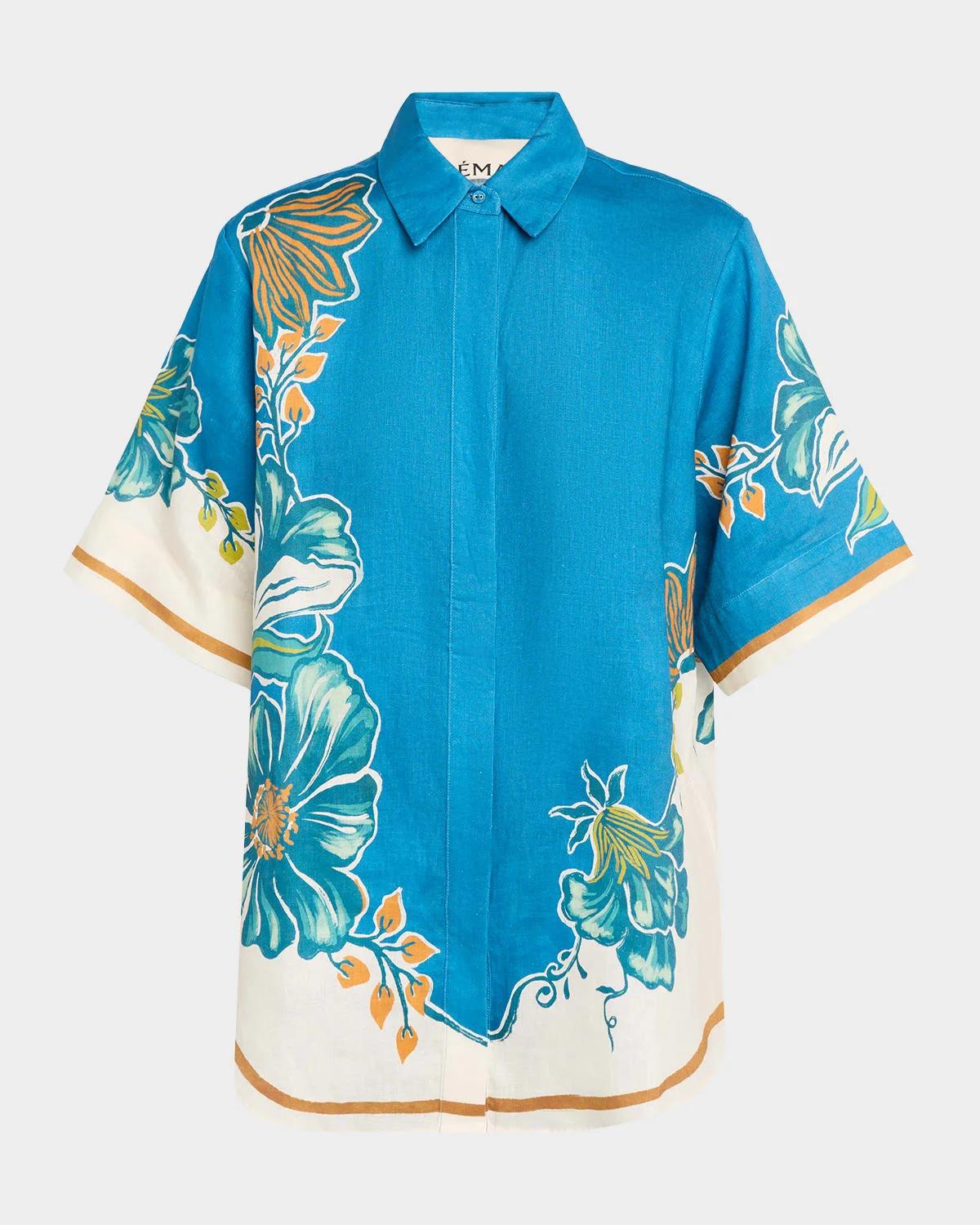 This ALEMAIS "Luda" shirt is cut from linen and decorated with a vibrant floral print Point collar Concealed button front Wide elbow sleeves Rounded hem Relaxed fit Linen Dry clean Imported