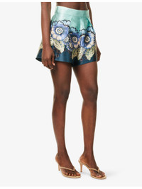 PRODUCT DETAILS - ALEMAIS satin shorts - 100% polyester; lining 100% cotton - Concealed zip fastening - Regular fit, high rise, structured waistband, pleats at front, floral print, lined - Machine wash cold - True to size - Size UK 8: rise 14.5in / 28cm, inside leg 3in / 7.5cm, leg opening 28in / 71cm - Model is 5ft 10in/1.78m and wears a size UK 8 - Lightweight, non-stretch Ref: R04510808