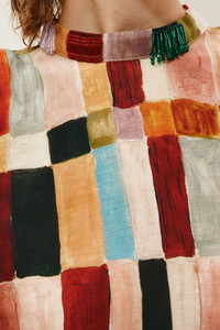 Product Details - Artwork in collaboration with Laurence Leenaert - Relaxed mini dress silhouette - Round neck with button and loop closure at centre back - Refer to size guide for garment measurements - Refer to flat lay product shots for true product colour representation - Composition: 80% Linen 20% Silk - For this piece we recommend delicate dry clean only. Size & Fit Model height is 5’10.5in/179cm, Bust: 80cm/31.5in, Waist: 61cm/24in, Hip: 88cm/34.5in, and wears a size AU6