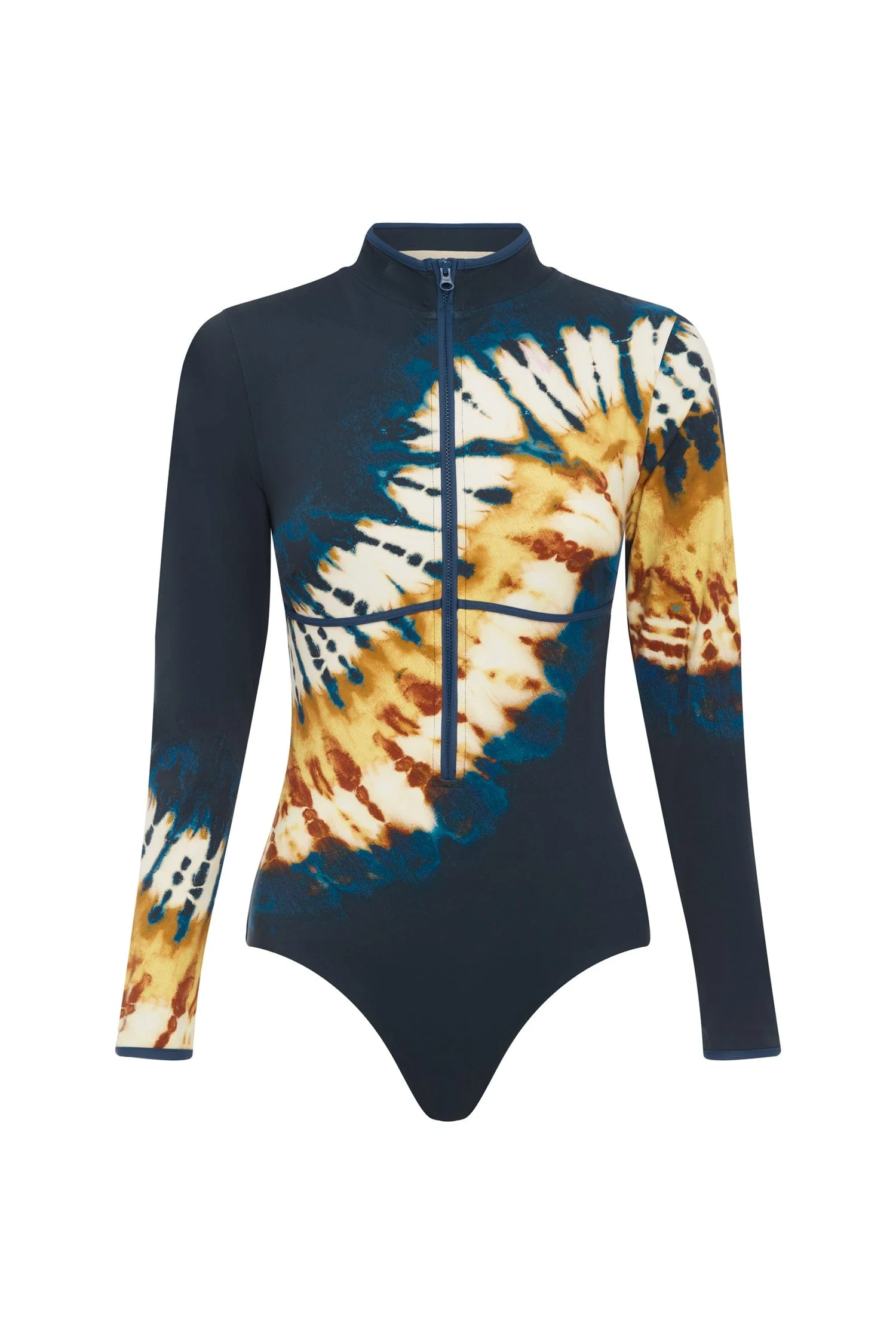 Product Details - Fitted long sleeve one-piece swimsuit silhouette - Round neck - Front zip closure detail - Boyleg legline - Full coverage bottom - Refer to size guide for garment measurements - Refer to flat lay product shots for true product colour representation - Composition: 76% Recycled Nylon 24% Elastane - For this piece we recommend a cold hand wash. Size & Fit Model height is 5’9.5in/176.5cm, Bust: 75cm/29.5in, Waist: 63cm/25in, Hip: 85cm/33.5in, and wears a size AU6