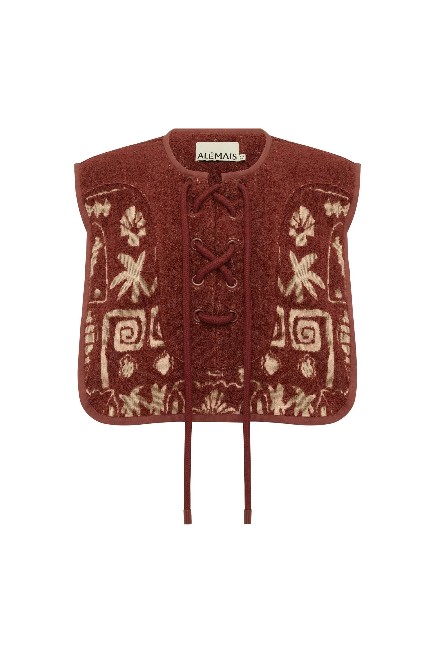 Product Details - Artwork in collaboration with Laurence Leenaert - Relaxed vest top silhouette - Round neck collar - Lace-up detail at front - Refer to size guide for garment measurements - Refer to flat lay product shots for true product colour representation - Composition: 100% Organic Cotton - For this piece we recommend a cold hand wash. Size & Fit Model height is 5’9.5in/176.5cm, Bust: 76cm/30in, Waist: 63.5cm/25in, Hip: 87.5cm/34.5in, and wears a size AU6