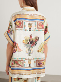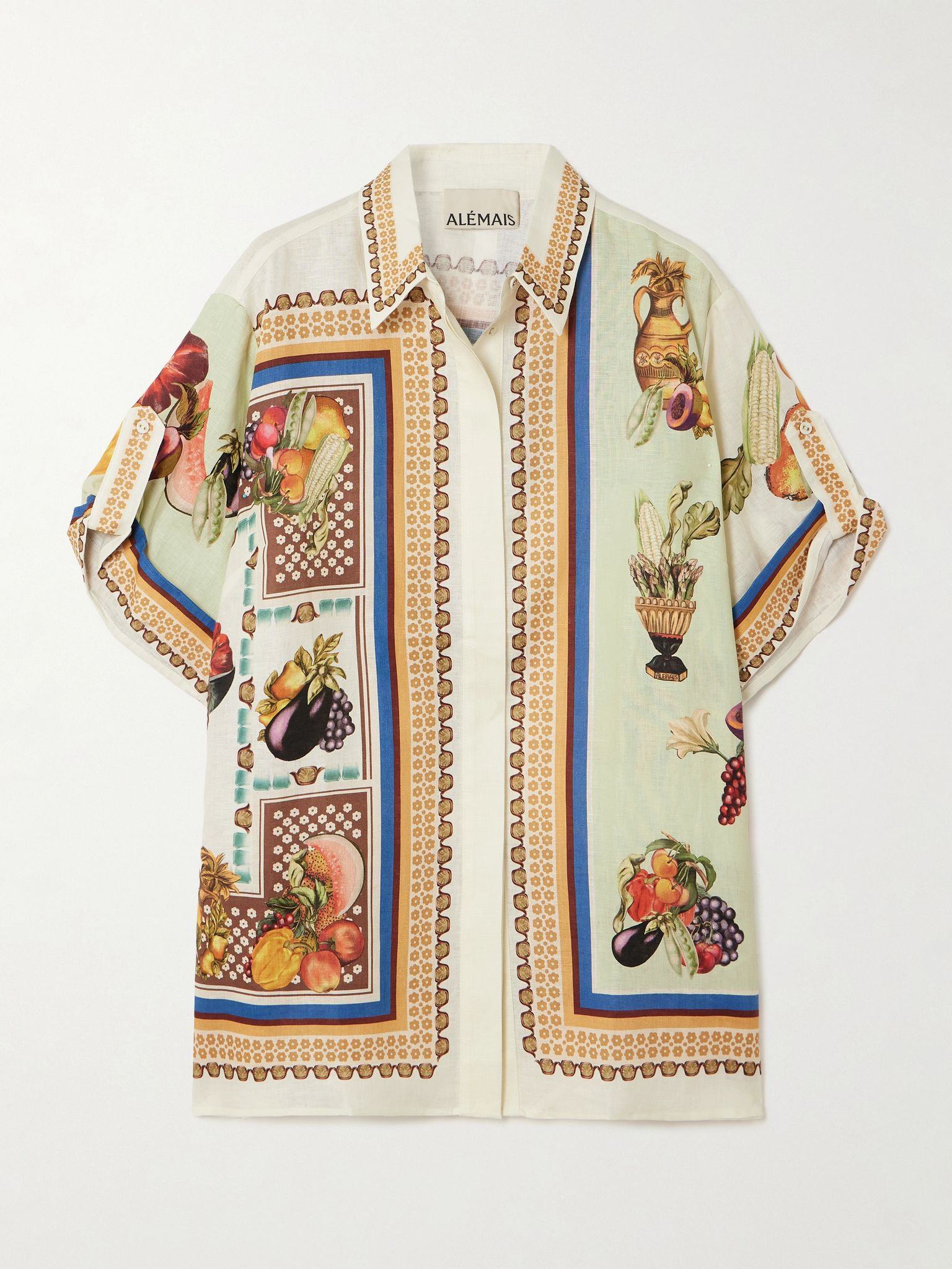 ALEMAIS' 'Mercado' shirt is a celebration of summer's abundance. Cut in a relaxed shape, it's made from breezy linen that's printed with painterly fruits, vegetables and geometric patterns. Wear yours with the matching pants and leather sandals. Size & Fit - Fits true to size, take your normal size - Cut for a relaxed fit - Lightweight, non-stretchy fabric - Model is 177cm/ 5'10" and is wearing a UK 8 Model measurements: - Bust: 85cm/ 33” - Waist: 66cm/ 26” - Hip: 92cm/ 36” Details & Care - Multicolored linen - Partially concealed button fastenings through front - 100% linen - Hand wash or dry clean