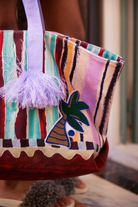 Product Details - Artwork in collaboration with Laurence Leenaert - Printed cotton canvas large tote bag - Lilac branded woven jacquard webbing handles with tassel ends - Textured patches - Internal slip pocket - Refer to flat lay product shots for true product colour representation - Composition: 100% Cotton To care for your piece, we recommend to: - Avoid prolonged exposure to light and heat to prevent damage to delicate fibres. - Handle with care. Avoid bending, overfilling, or placing under pressure. - Protect from moisture and avoid prolonged exposure to rain or humidity. If wet, gently pat dry with a soft cloth. - When not in use, store bags in your Alemais dust bag. Avoid hanging. - Clean gently with a soft, dry cloth. For deeper cleaning, seek professional services only. Size & Fit Dimensions: 65cm W x 35cm H x 18cm base depth / 26cm handle drop