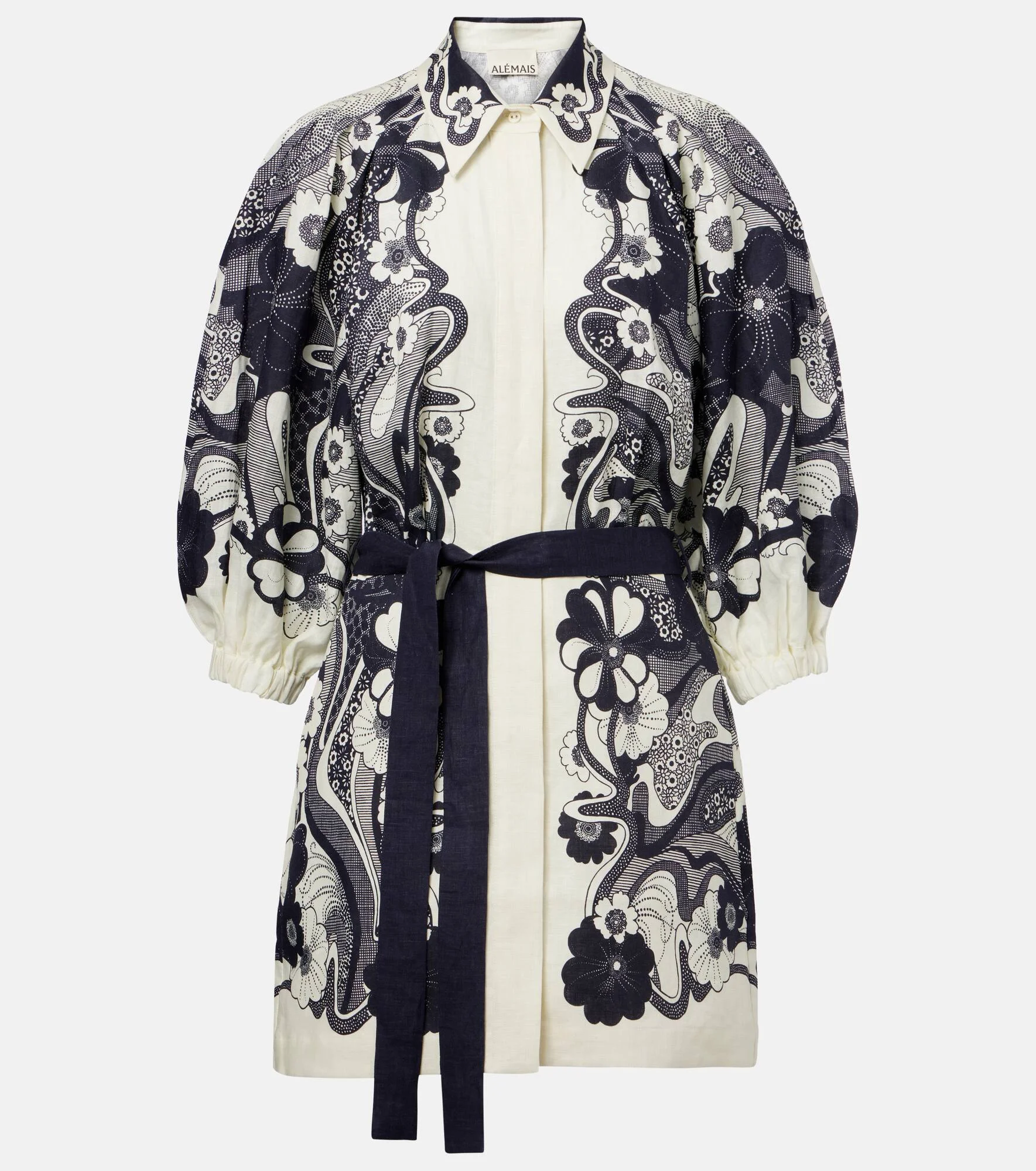 Made from pure linen, this dark navy floral Mickey shirt dress from Alemais features a straight-point collar, concealed buttons, ¾-length sleeves with elasticated cuffs. The design includes side slit pockets and a detachable belt for a versatile look. Product Details - Material: 100% linen - Care instructions: hand wash - Made in China - Designer color name: Navy - Item color: white, blue - Lining: 100% cotton - Fully lined - Closure: concealed buttoned front - Collar: classic (Straight point) - Pockets: side slit pockets - Sleeves: ¾ length - Elasticated cuffs - Detachable belt - Item number: P01063687 Size & Fit - True to size - Cinched waist - Non-stretchy fabric - The model seen in the picture is 178cm-5'10" and wearing a size UK 6