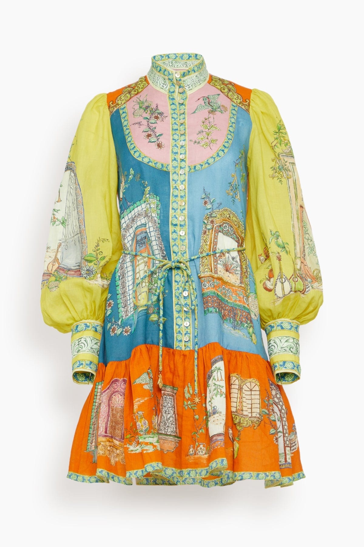 The Alemais Monte Mini Dress is crafted in one of their signature standout prints. You'll love the blouson sleeves and full skirt of this mini dress. Wear yours with sandals and a tote bag. FIT DESCRIPTION MODEL MEASUREMENTS - Fits true to size, take your normal size - Mini length - Button front - Blouson sleeves - Stand collar - Full skirt - 100% Ramie - Harriet is wearing a size 6/ 2 US - Bust: 32" - Waist: 24" - Hips: 30.5" - Height: 5’8.5”