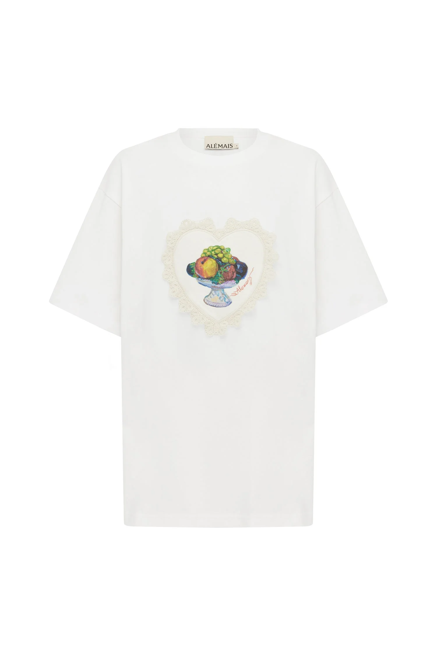 Product Details - Artwork in collaboration with Greg Sindel of Studio A - Relaxed fit short sleeve t-shirt with placement print - Ribbed neck - Lace heart detail - Refer to size guide for garment measurements - Refer to flat lay product shots for true product colour representation - Composition: 100% Organic Cotton - For this piece we recommend a cold hand wash. Size & Fit Model height is 5’10.5in/179cm, Bust: 82cm/32.5in, Waist: 64cm/25in, Hip: 88cm/34.5in, and wears a size AU8