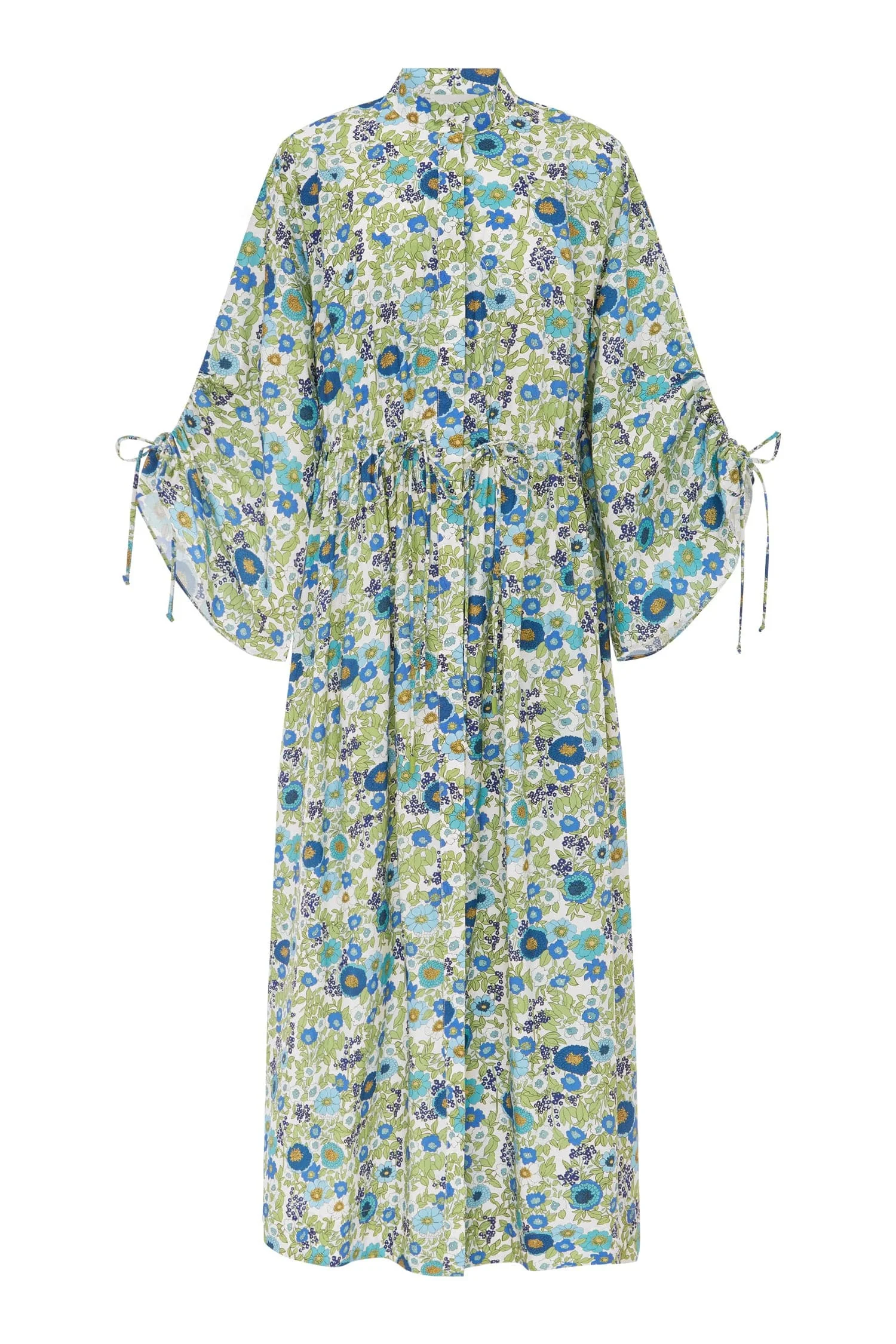 Product Details - Relaxed shirt dress silhouette - Stand collar and concealed placket with self-covered buttons - Slightly flared sleeve with adjustable drawstring gathering and ties - Adjustable drawstring gathering waist and ties with toggle end - Gathered skirt - Refer to size guide for garment measurements - Composition: 100% Organic Cotton Poplin - For this piece we recommend a cold hand wash.