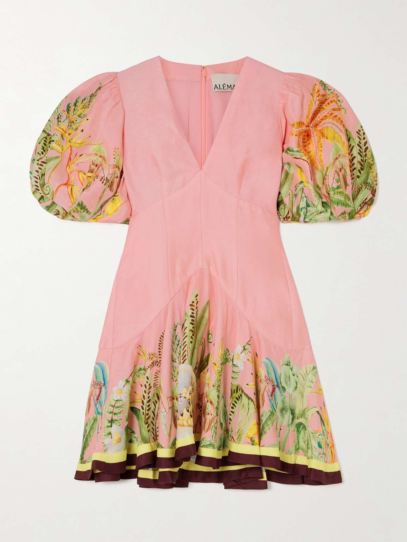 EDITORS'NOTES ALEMAIS' vibrant prints imbue each design with a worldly, eclectic spirit. This mini dress is made from a breathable linen-blend featuring tropical flowers along the softly pleated hem and billowy sleeves. The contouring seams define your figure. SIZE & FIT Model measurements: - Fits true to size, take your normal size - Designed to be fitted at the bust and waist, slightly loose at the hip - Slightly short in length - Mid-weight, non-stretchy fabric - Model is 180cm/ 5'11" and is wearing a UK 8 - Bust: 80cm/ 31.5" - Waist: 65cm/ 25.5" - Hip: 89cm/ 35" DETAILS & CARE - Multicolored linen-blend - Concealed hook and zip fastening along back - 56% linen, 44% viscose; lining: 100% cotton - Dry clean