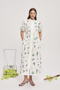 Product Details - Artwork in collaboration with Anouk Colantoni - Fitted midi shirtdress silhouette - All-over embroidery - Round collar stand - Short puff sleeve with tucks - Concealed placket with self-covered buttons - Pleated skirt - In seam pockets - Self-covered rouleau belt - Refer to size guide for garment measurements - Refer to flat lay product shots for true product colour representation - Composition: 100% EuropeanLinen - For this piece we recommend dry clean only. Size & Fit Model height is 5'10.5"in/179cm, Bust: 80cm/31in, Waist: 58.5cm/23in, Hip: 89cm/35in, and wears a size AU8