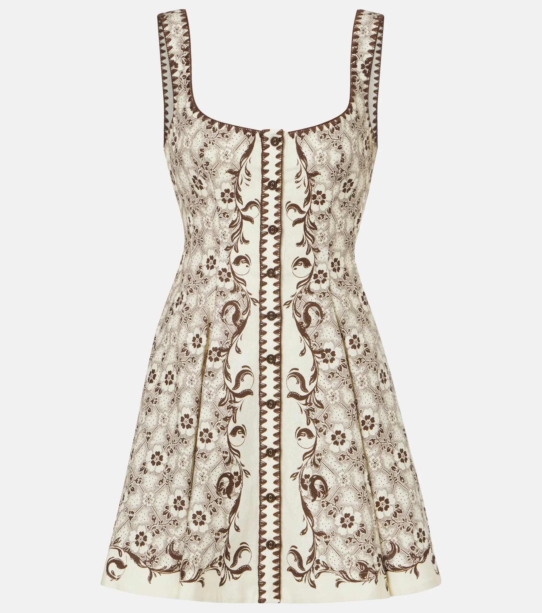 A contemporary brand with an artisanal focus, Alemais celebrates the art of fashion through an eclectic mix of patterns and prints. This minidress is made from linen and cotton and finished with a charming print. Product Details - Material: 55% linen, 45% cotton - Care instructions: dry clean - Made in China - Color: beige - Designer color name: Cream/Brown - Lining: 100% cotton - Closure: buttoned front - Item number: P01124602 Size & Fit - True to size - Cinched waist - Non-stretchy fabric - The model seen in the picture is 178cm-5'10" and wearing a size UK 6