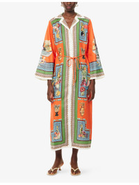 PRODUCT DETAILS - ALEMAIS flax midi dress - 100% flax - Button fastening at front - Relaxed fit, classic collar, long sleeves, drawstring at waistband, side slip pockets, all-over graphic pattern - Hand wash - True to size - Size UK 8: length 54in / 138cm - Model is 5ft 10in/1.78m and wears a size UK 8 - Midweight, non-stretch Ref: R04488171