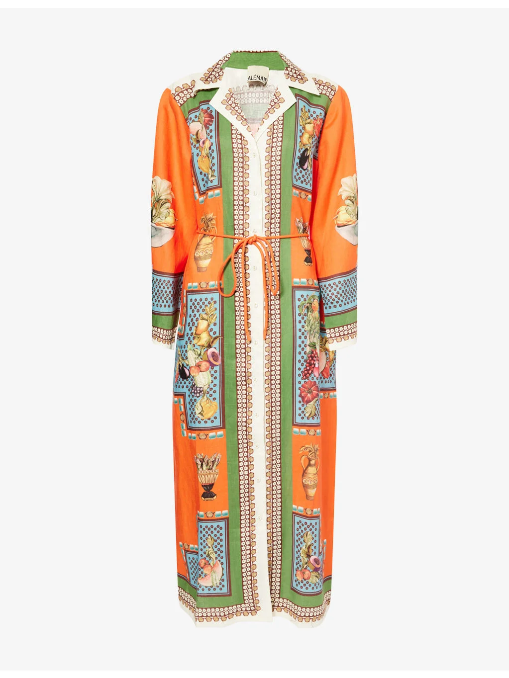 Rocco Graphic-Pattern Flax Midi Shirt Dress